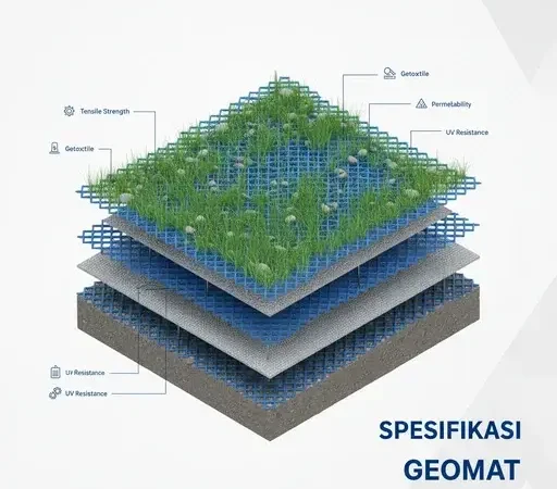 Material berbasis polypropylene/polyester yang memiliki kekuatan tarik tinggi untuk memperkuat tanah dasar pada proyek konstruksi.