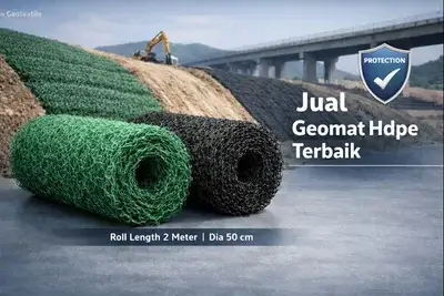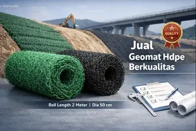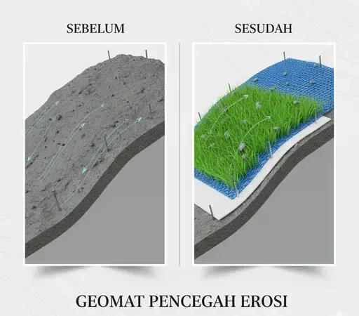 Studi kasus: Proyek slope protection di area tol → geomat mempercepat pertumbuhan vegetasi dan menstabilkan permukaan topsoil.