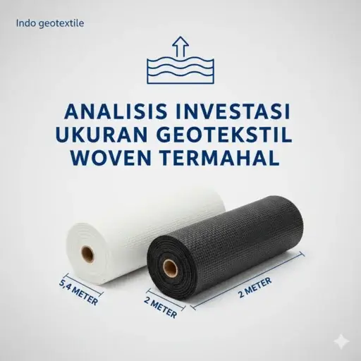 Menariknya, produk dengan ukuran geotekstil woven termahal per meter persegi sering kali diproduksi dalam ukuran rol yang lebih lebar (misalnya 5 meter hingga 6 meter). Meskipun harga per rolnya sangat tinggi, lebar ekstra ini mengurangi jumlah sambungan (overlap). Dalam proyek seluas 10 hektar, pengurangan overlap sebesar 50 cm di setiap lembaran dapat menghemat ribuan meter persegi material, yang secara paradoks menurunkan total biaya pengadaan dibandingkan produk murah dengan lebar sempit.