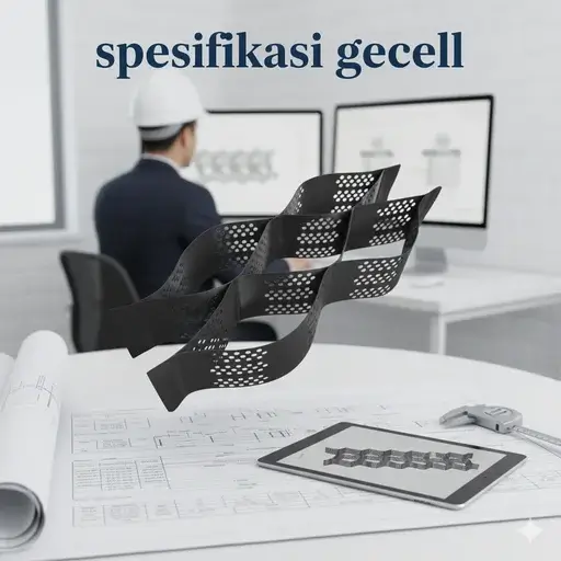 Spesifikasi geocell dapat dikategorikan menjadi tiga pilar utama yang menentukan kinerja, yaitu material baku, geometri fungsional, dan kekuatan mekanis.