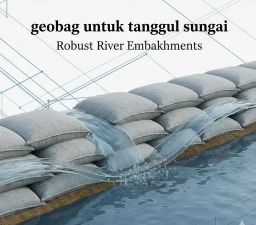 Geobag untuk tanggul sungai adalah rekayasa geoteknik modern yang memberikan perkuatan fleksibel. Fungsinya sangat penting untuk stabilisasi lereng, kontrol